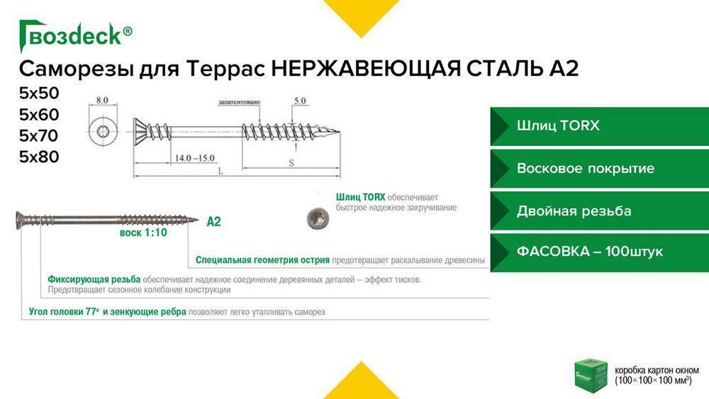 Модель: Саморез для крепления террасной доски, нержавеющая сталь А2