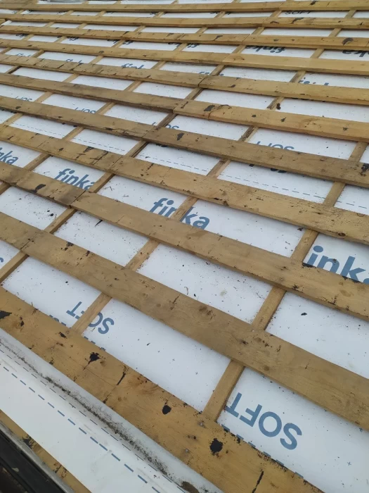 Диффузионная мембрана Finka Soft 110 - для крыш и вентилируемых фасадов, для наружного применения. Монтируется на утеплитель. Состоит из прочной 3-слойной комбинации функционального (дышащего) слоя произведенного в Германии и внешних слоев из первичного нетканого полипропилена. Произведена по современной технологии склеивания слоев ультразвуком (Ultrasonic), которая позволяет добиться максимальных диффузных свойств, прочности и долговечности. Плотность 110 г/м2 и защита от УФ позволяет находиться без финишного покрытия 120 дней. Высокая паропропускаемость и антиконденсатный защитный слой уберут всю лишнюю влагу из подкровельного пространства и утеплителя. Выдерживает высокую температуру, что очень важно при металлических кровлях.